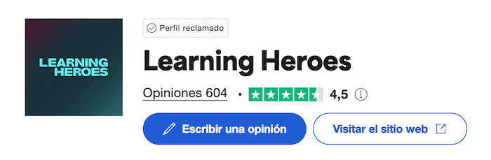 Learning Heroes, la plataforma responsable de Crypto Heroes PRO, cuenta con una excelente valoración en Trustpilot.